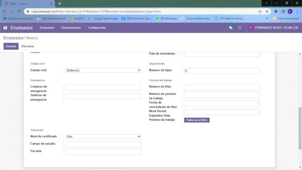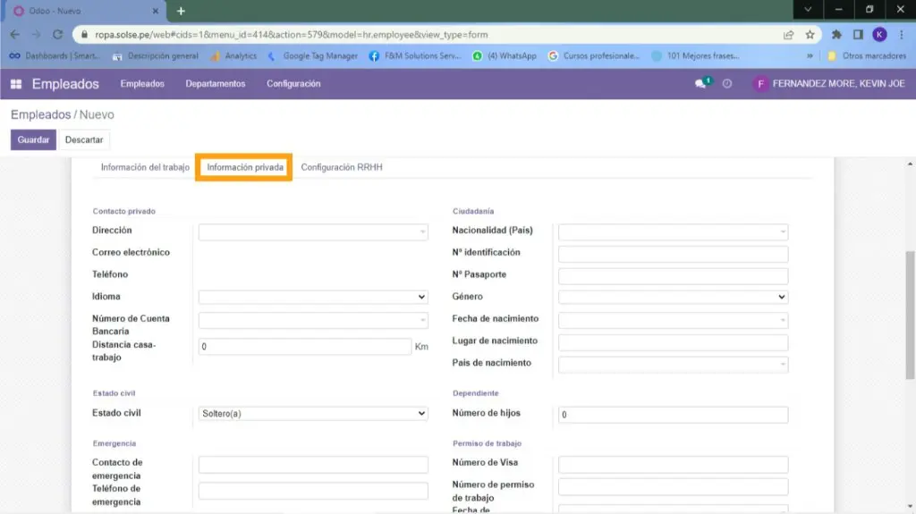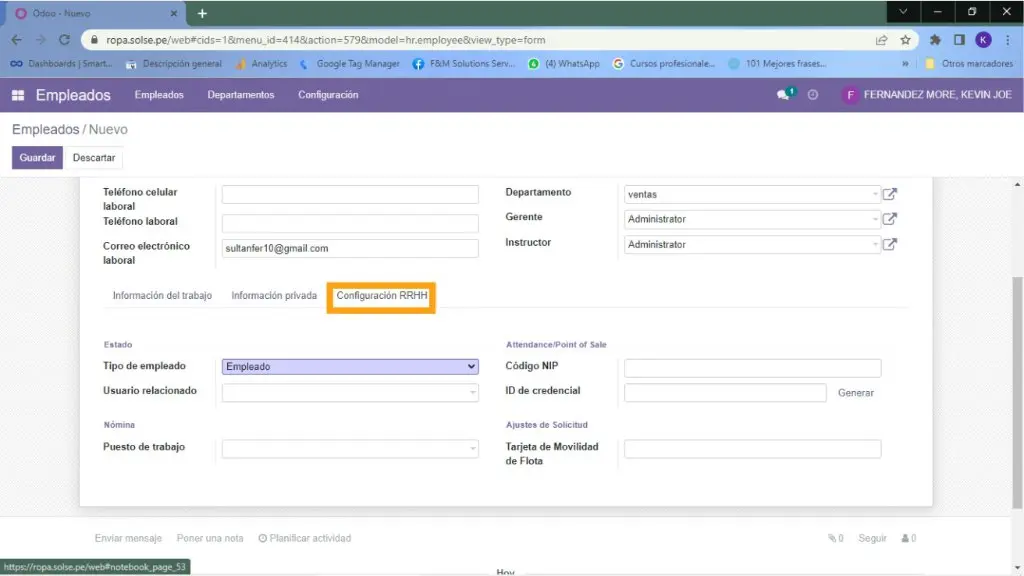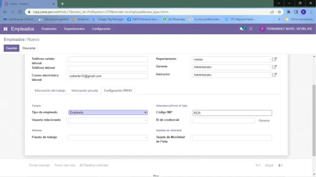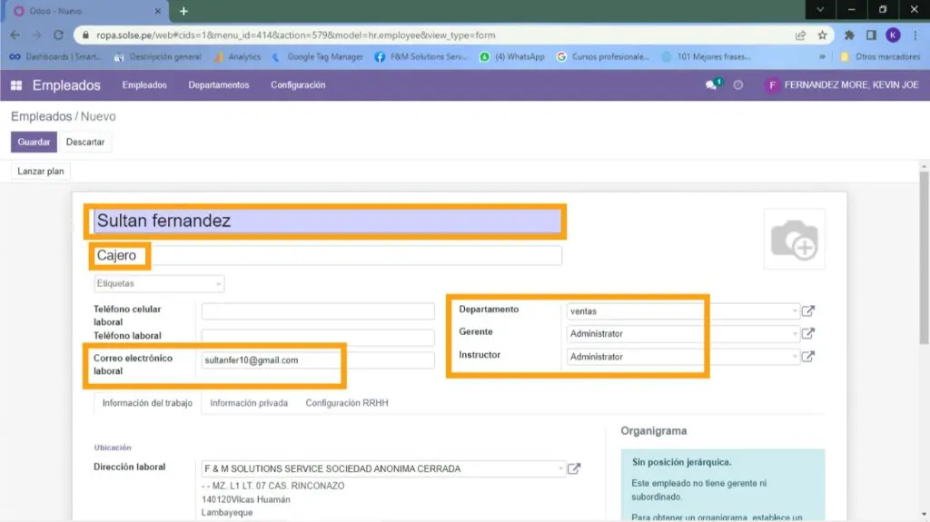 3) Colocamos los datos necesarios del empleado