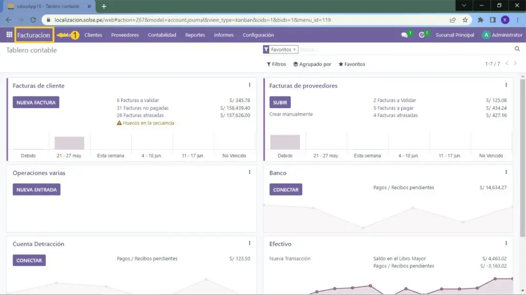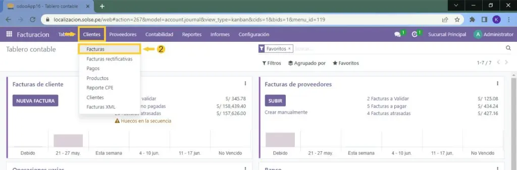 2) Nos dirigimos a "Clientes" y damos clic en "Facturas".