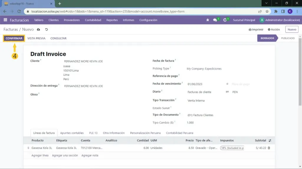 4) Una vez llenado los datos damos clic en "Confirmar".