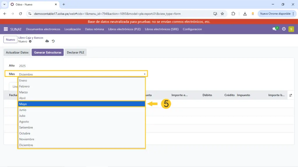 2) Luego damos clic en "Libros electrónicos (PLE), luego clic en "Estructura 01 - libro caja y banco).
