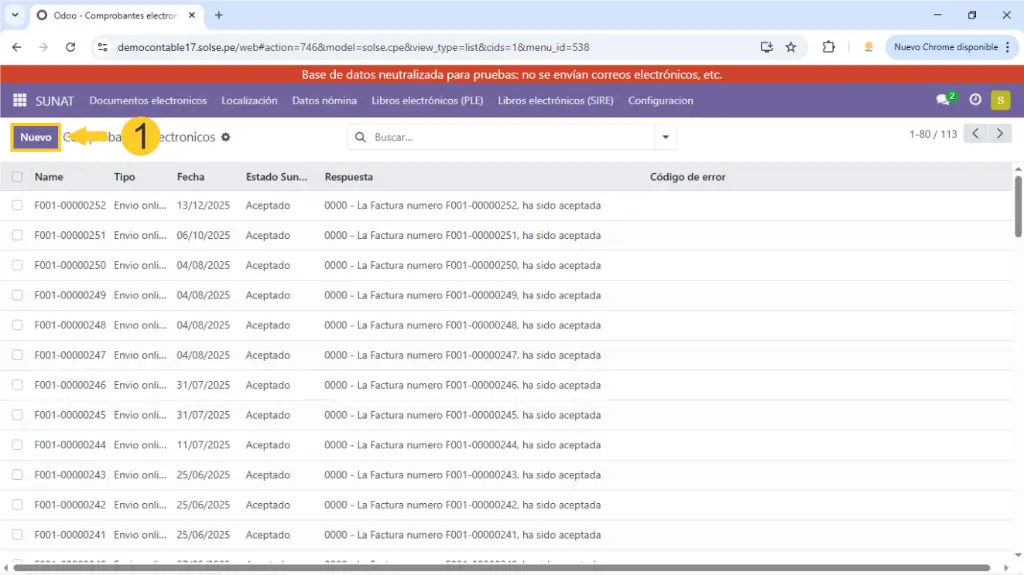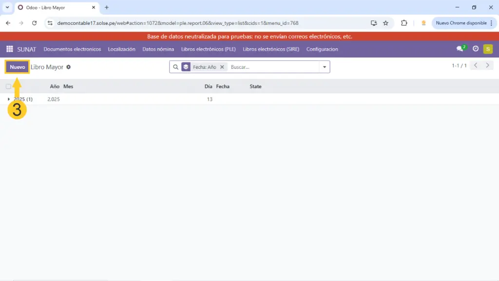 3) Luego damos clic en "Nuevo".