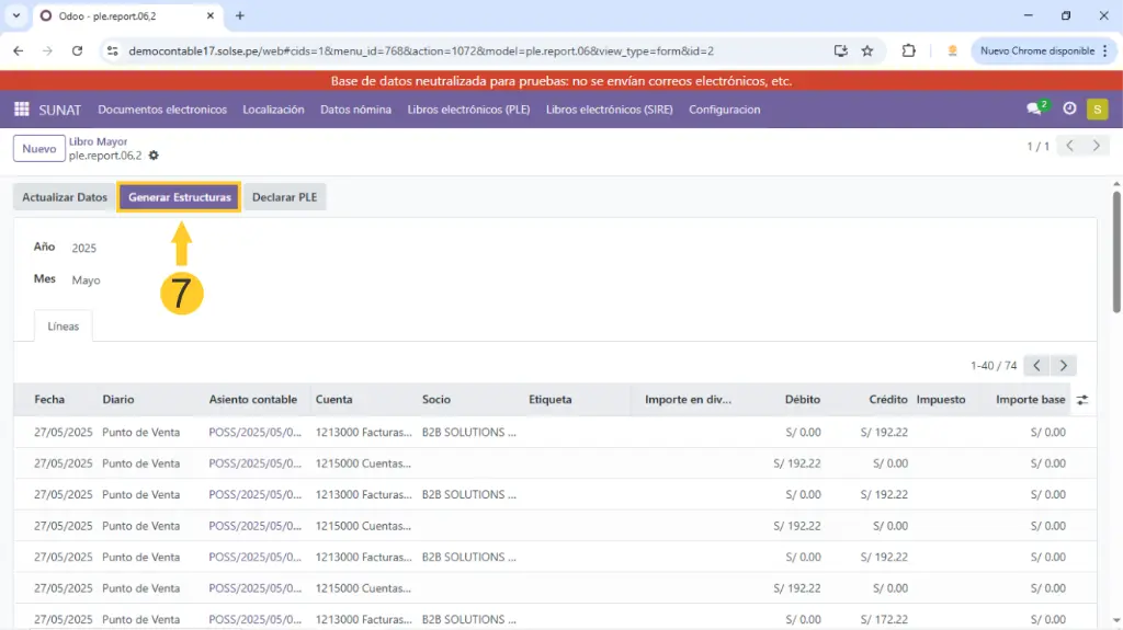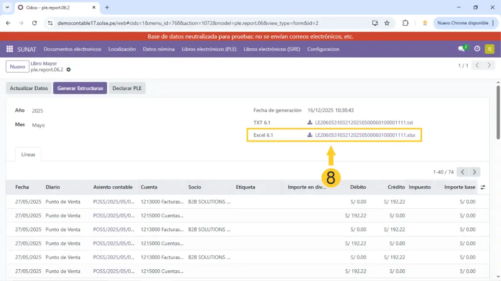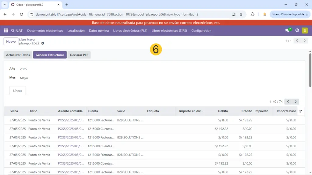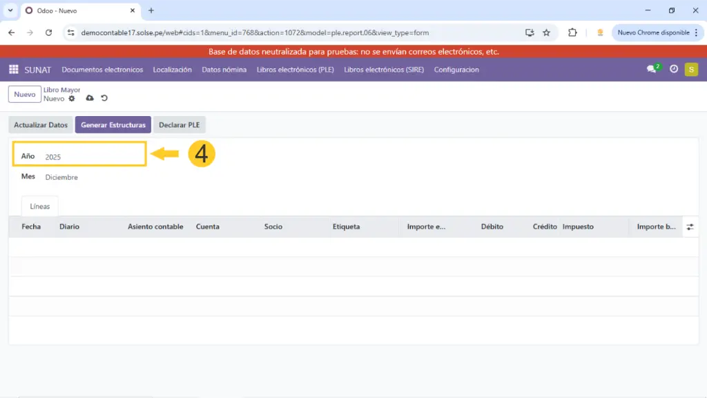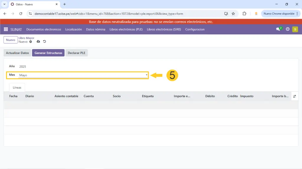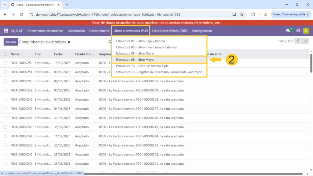2)  Luego damos clic en "Libros electrónicos (PLE), luego clic en "Estructura 06 - libro Mayor."