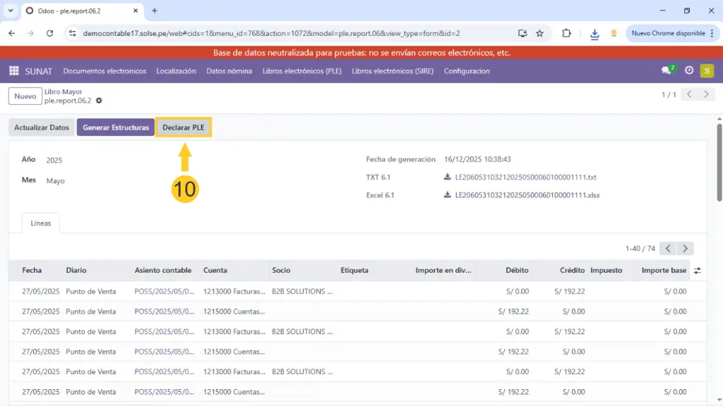 10) Podemos dar clic en "Declarar PLE" para que ya no se pueda editar.
