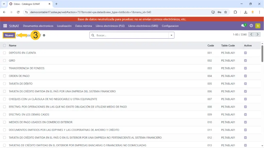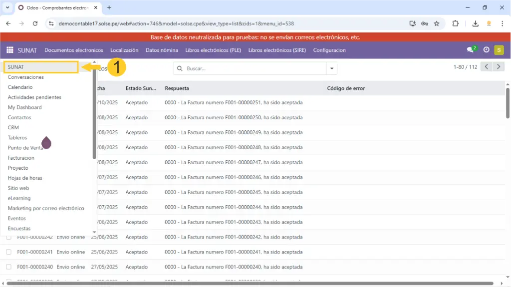 2) Luego damos clic en "Configuración" y clic en "Catalogo SUNAT".