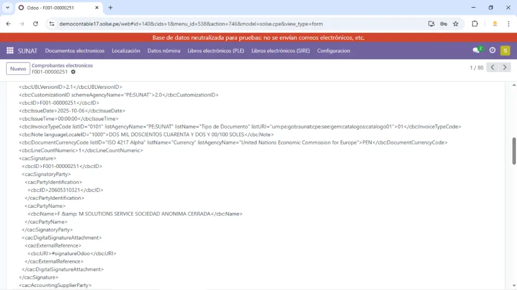 Te enseñamos cómo observar lo que este módulo ofrece, Genera los datos XML, datos firmado XML y librerías, de la Emisión de comprobantes electrónicos a SUNAT – Perú
