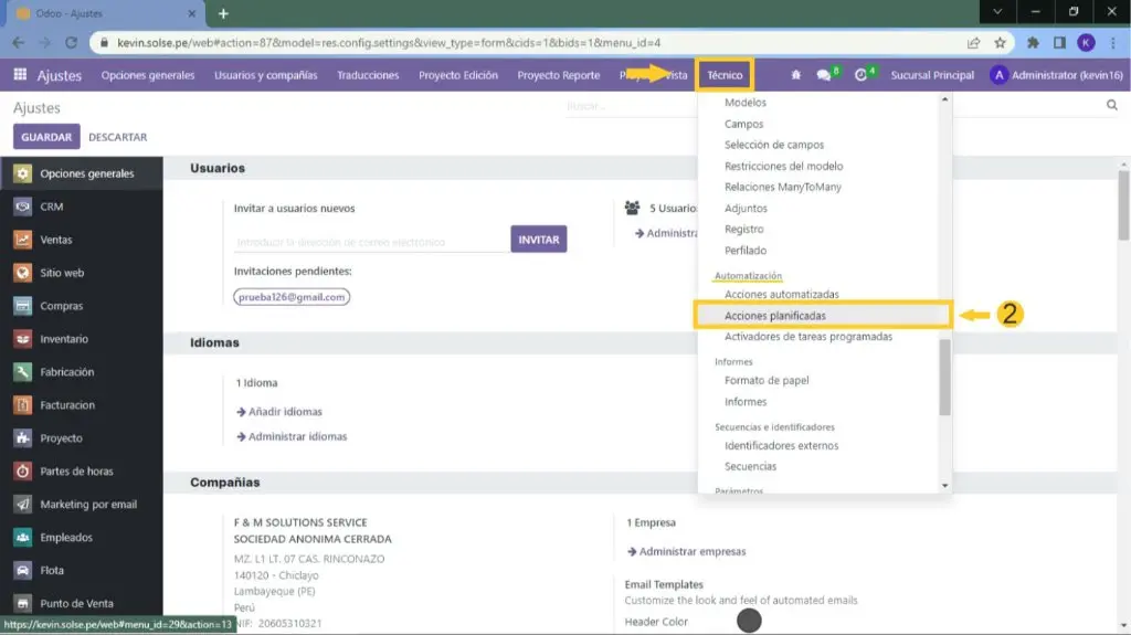2) Luego damos clic en "Técnico" y clic en "Acciones Planificadas".