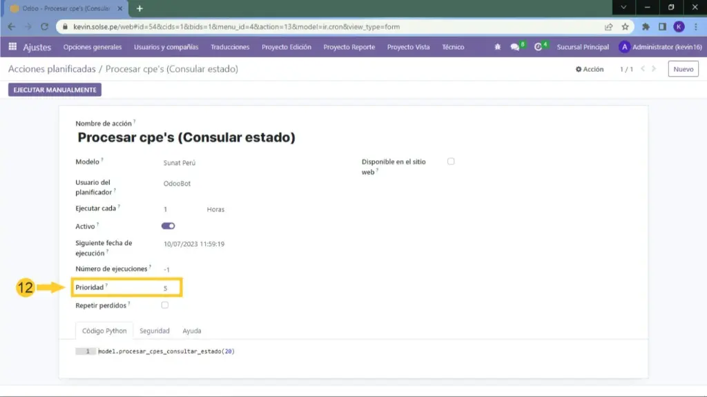 12) En el campo "Prioridad" podemos colocar la prioridad del trabajo expresada con un número, 0 significa máxima prioridad y 10 significa mínima prioridad.