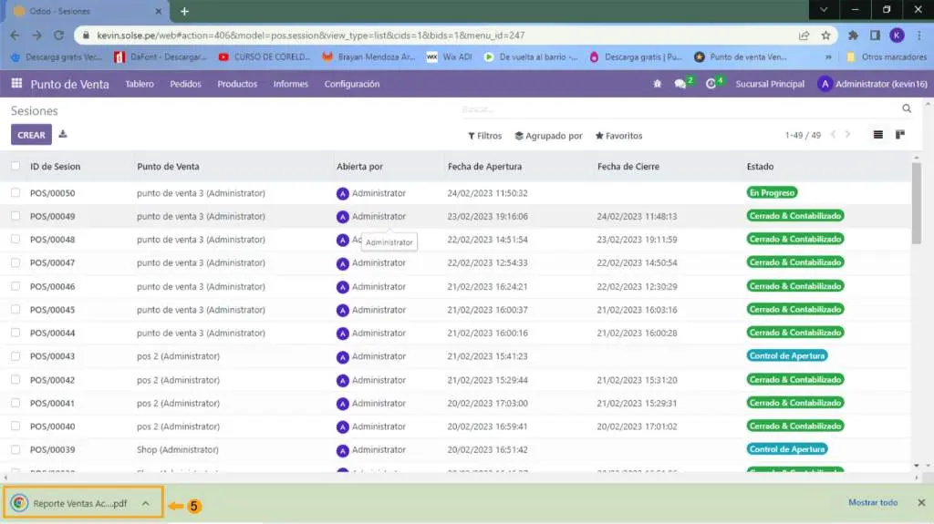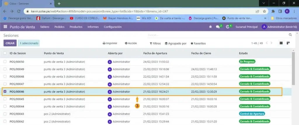 3) Elegimos la sesión en la que deseamos generar el reporte de venta actual.