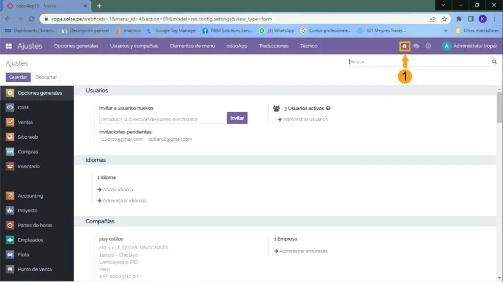 1) Nos dirigimos "Ajustes", observemos que estemos en modo desollador.