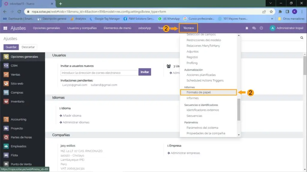 2) Hacemos clic en "Técnico" y luego en "Formato de papel".