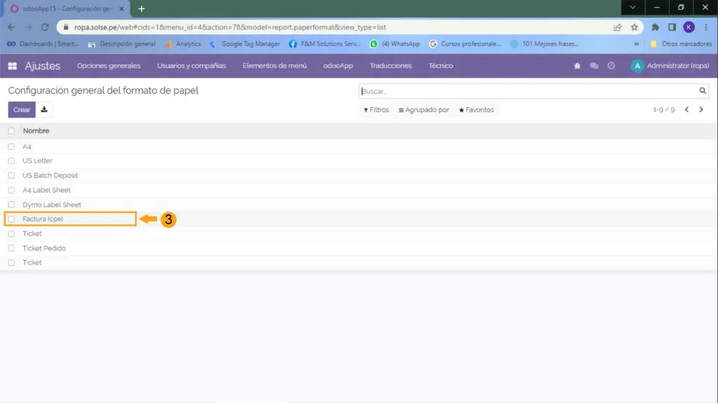 3) Para personalizar la factura, hacemos clic en "Factura (cpe)