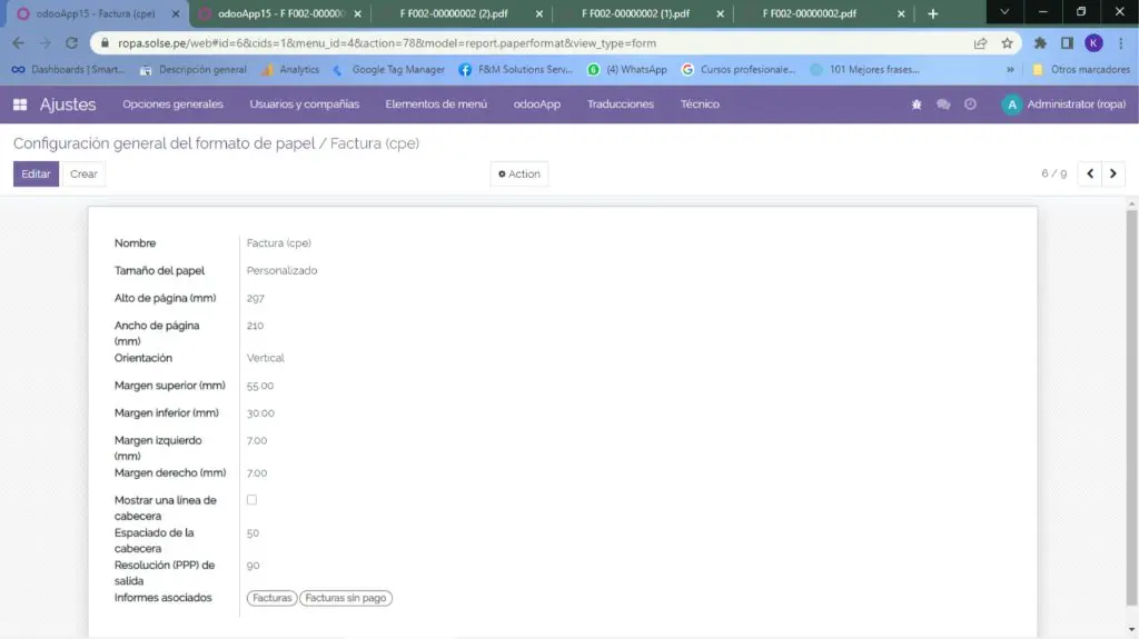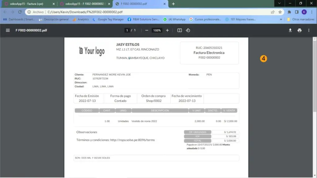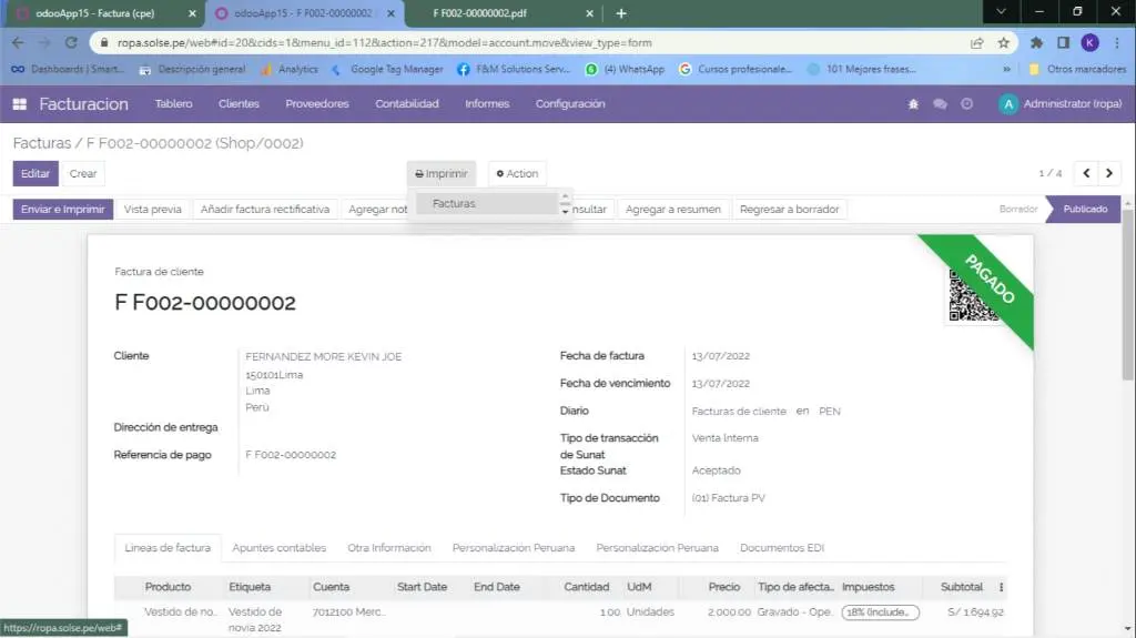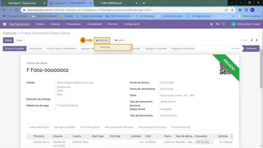 4) Vamos a imprimir una factura antes de modificar, para poder compararlo luego.