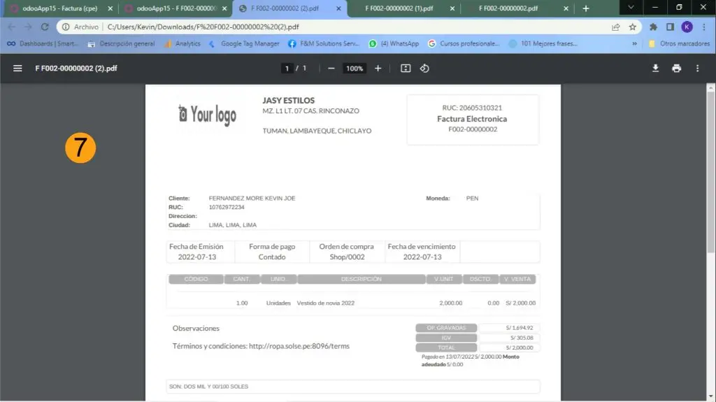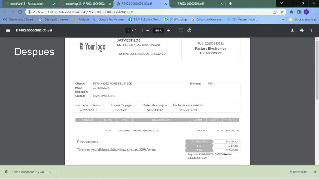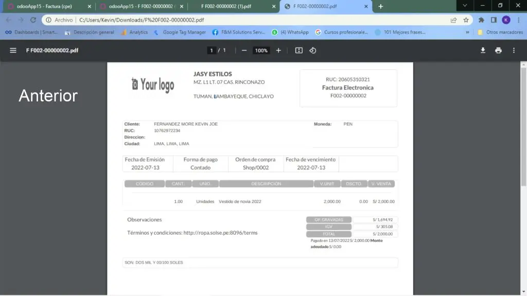 6) Imprimimos la factura, podemos observar el antes y después de personalizarlo.