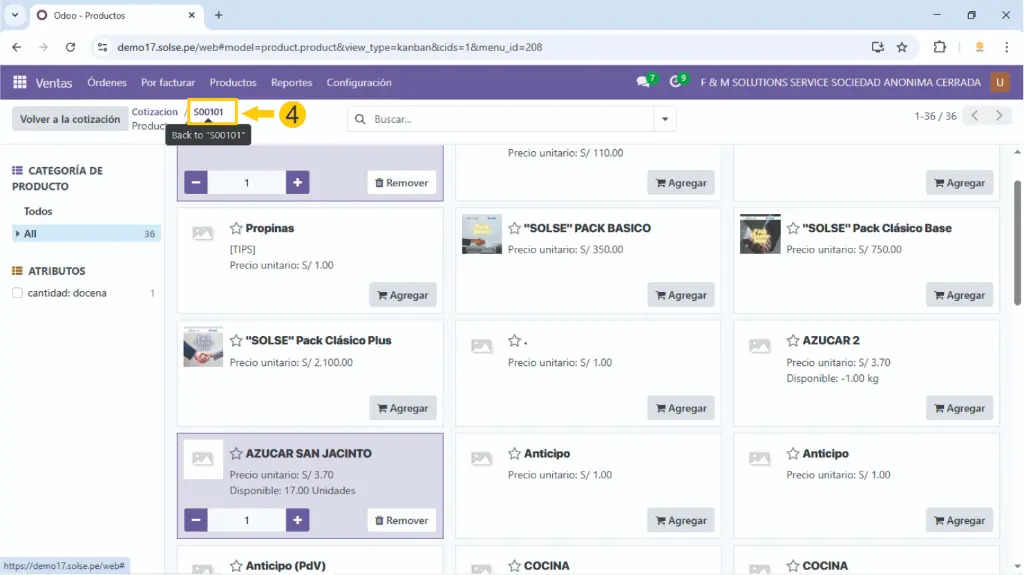 4). Luego regresamos en la cotización dando clic en el nombre de nuestra cotización.